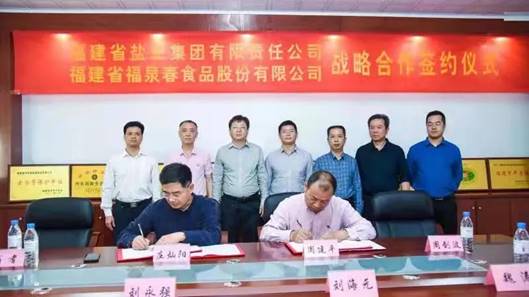 2021年3月30日,福建鹽業(yè)集團(tuán)有限責(zé)任公司與福建福泉春食品股份有限公司建立戰(zhàn)略合作關(guān)系的簽約儀式在福泉春廠部舉行。福鹽集團(tuán)總經(jīng)理莊燦陽代表集團(tuán)簽約。省工信廳,永春縣政府相關(guān)部門領(lǐng)導(dǎo)出席并見證簽約儀式。